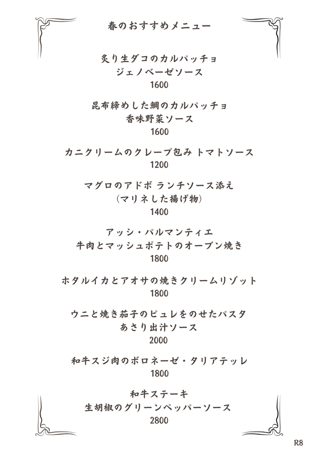本日は、旬の食材を惜しみなく使った、春メニューのご案内です。