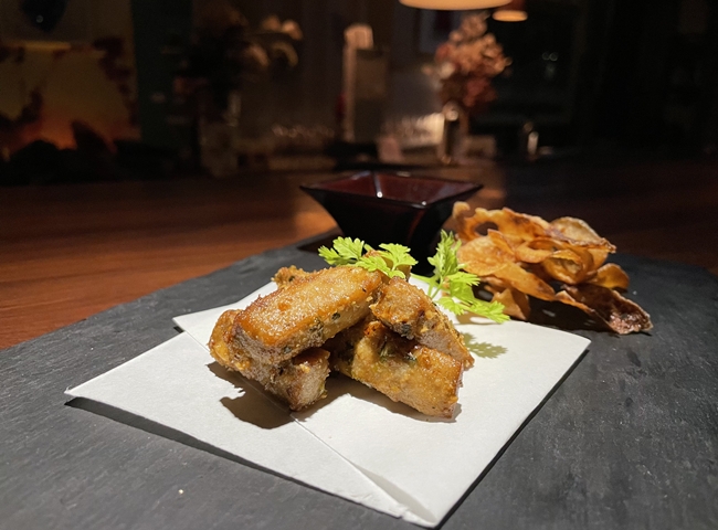 マグロのアドボ ランチソース添え(マリネした揚げ物)