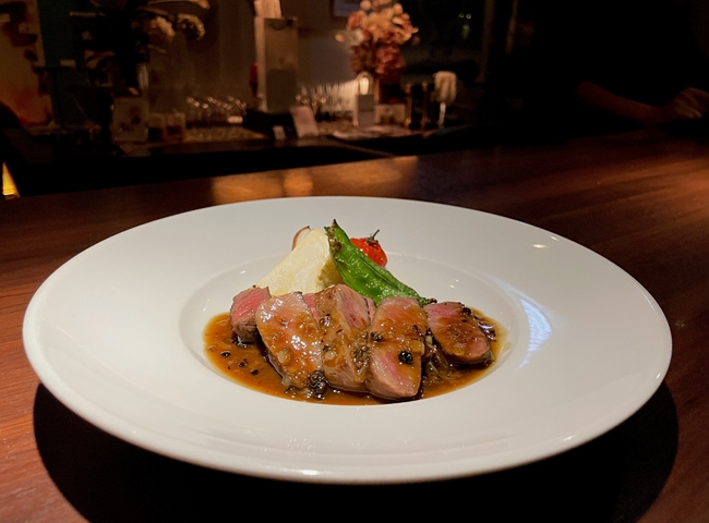 和牛ステーキ 生胡椒のグリーンペッパーソース