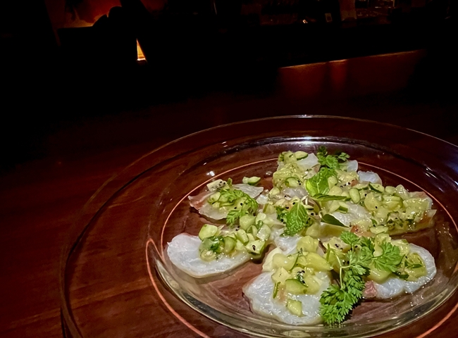 ・ 昆布締めした鯛のカルパッチョ 香味野菜ソース