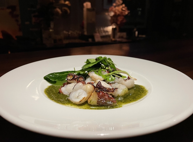 炙り生ダコのカルパッチョ ジェノベーゼソース